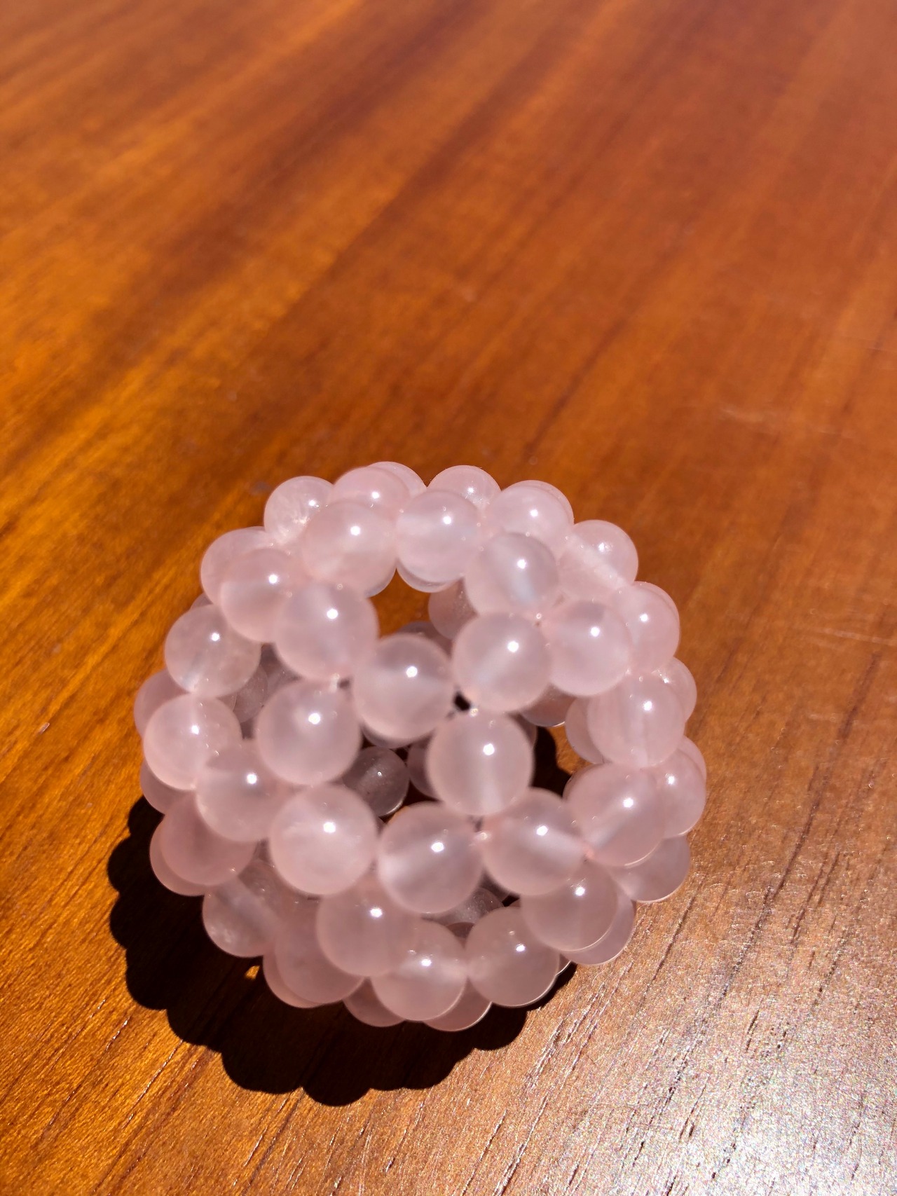 6mmサイズのローズクォーツを90粒使用しています。直径役4cm