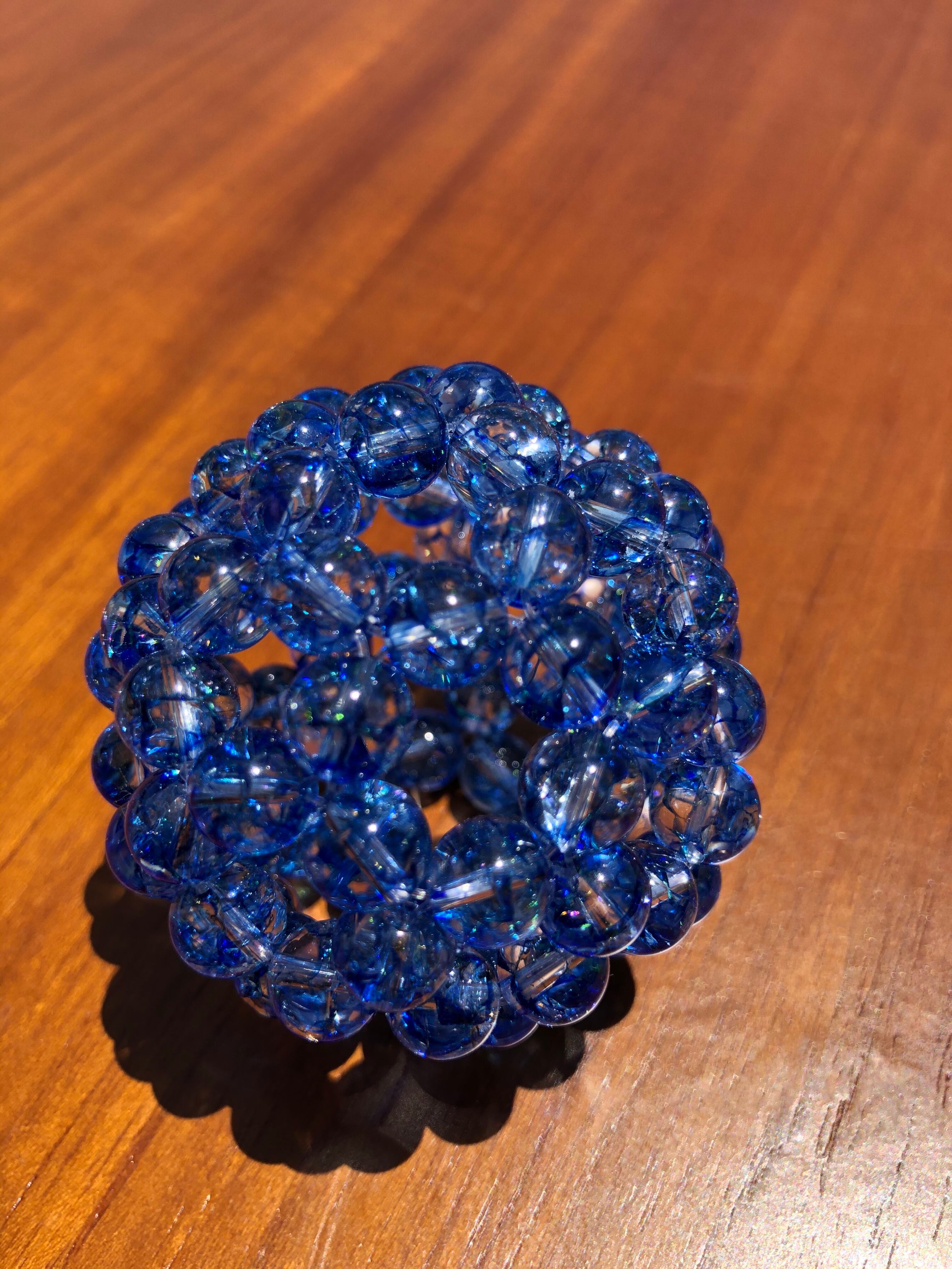 8mmサイズのブルークラック水晶を90粒使用しています。直径役5cm